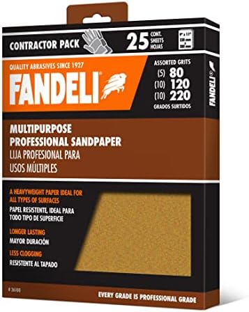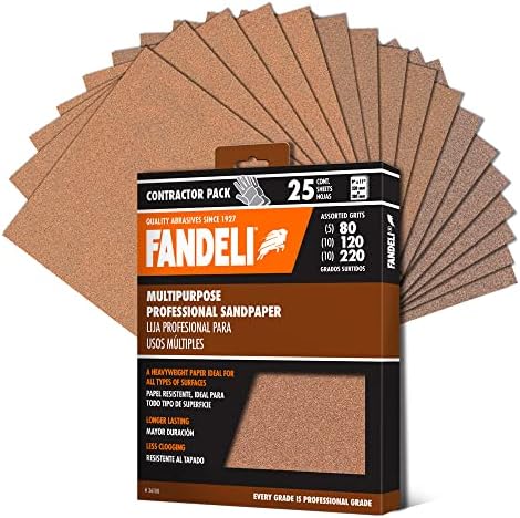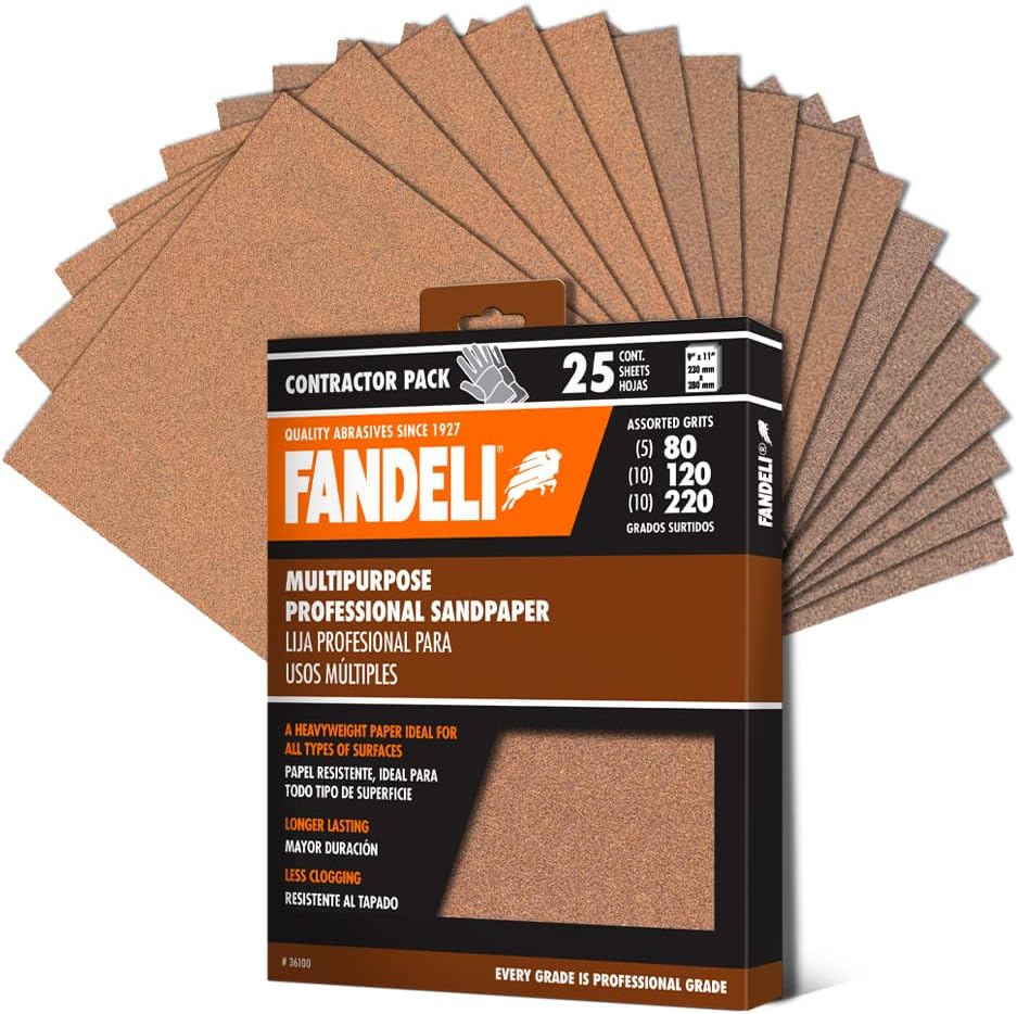 Fandeli | Multi-Purpose Sanding Paper | Assorted Grits (80,120,220) | 25 Sheets of 9” x 11” | Perfect for Sanding Metal and Sanding Wood | Hand Sanding | Orbital Sanders